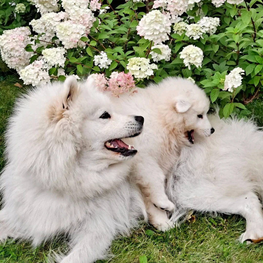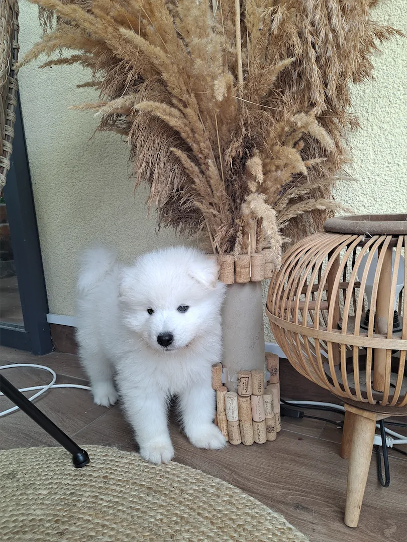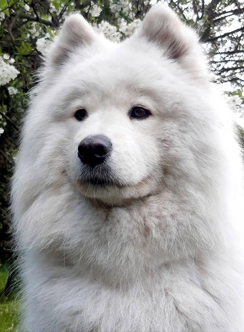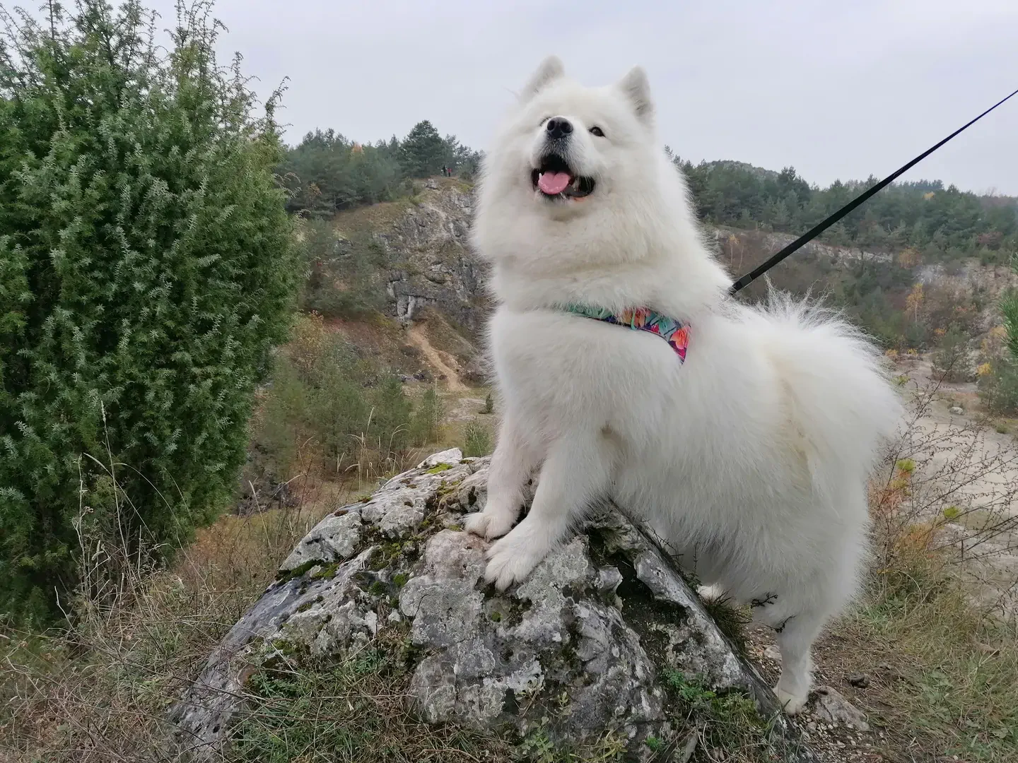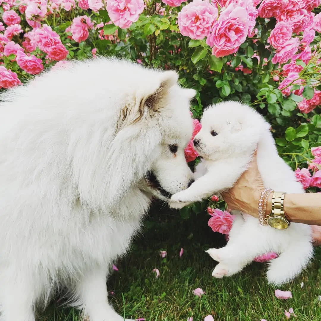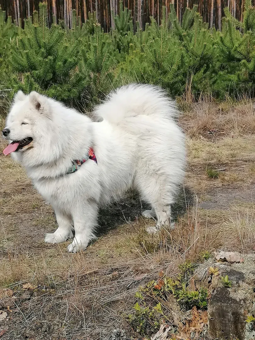 Spełniła nasze oczekiwania w 100%. Jest naszym wymarzonym samoyedkiem z niesamowitymi samoyedźimi cechami. Swoją słodkością roztopi serce każdego. Starsza osoba, moja mama, która boi się wszystkich piesków i nigdy nie dotknęła żadnego psa nawet w rodzinie, dziś głaszcze i pieści Sami. To zasługa wyłącznie Samusi, jej przemiłego charakteru, zaufania, które budzi w każdym, swoim rozbrajającym uśmiechem i osobowością.