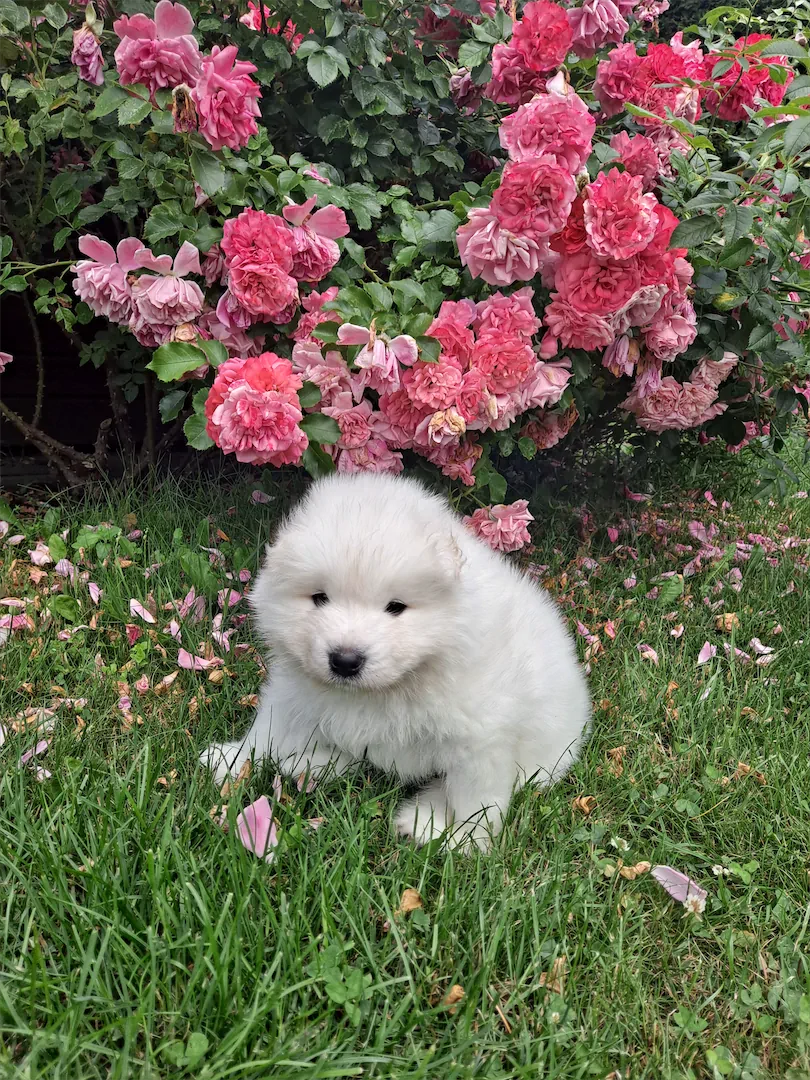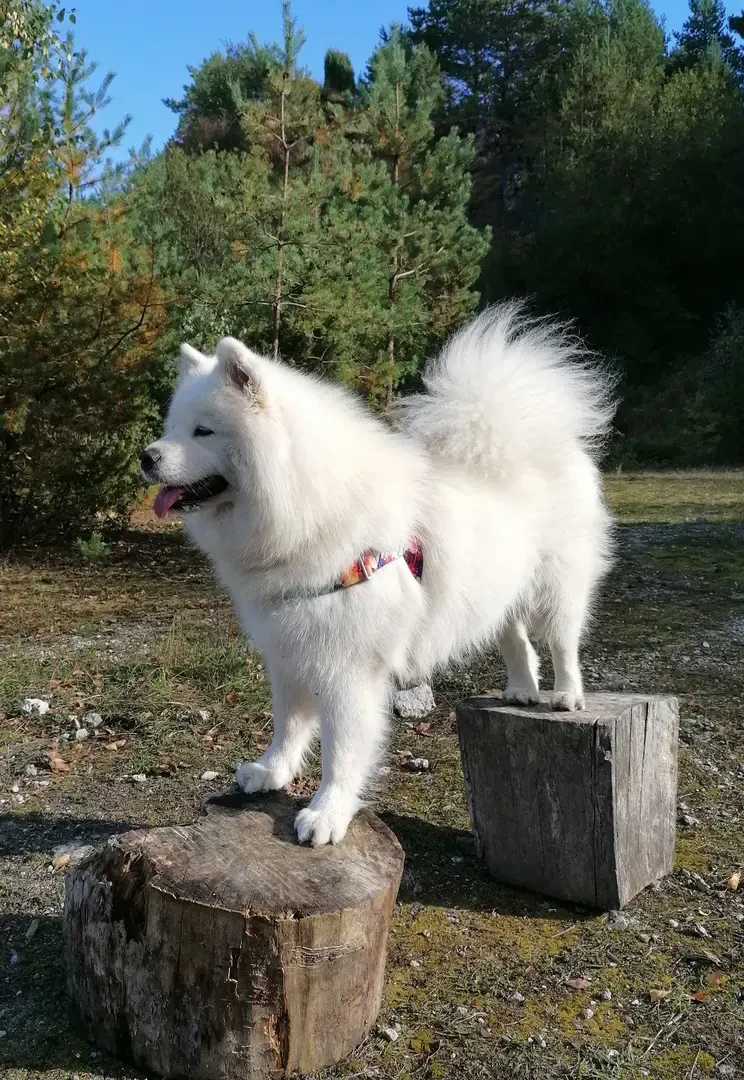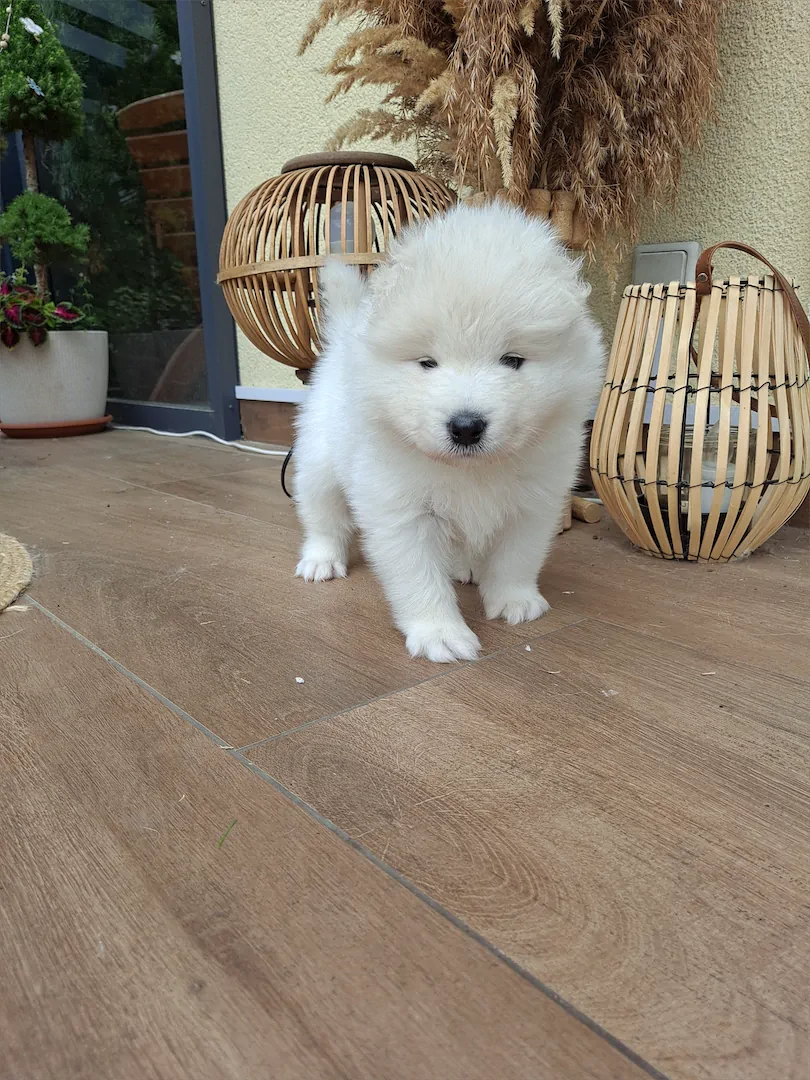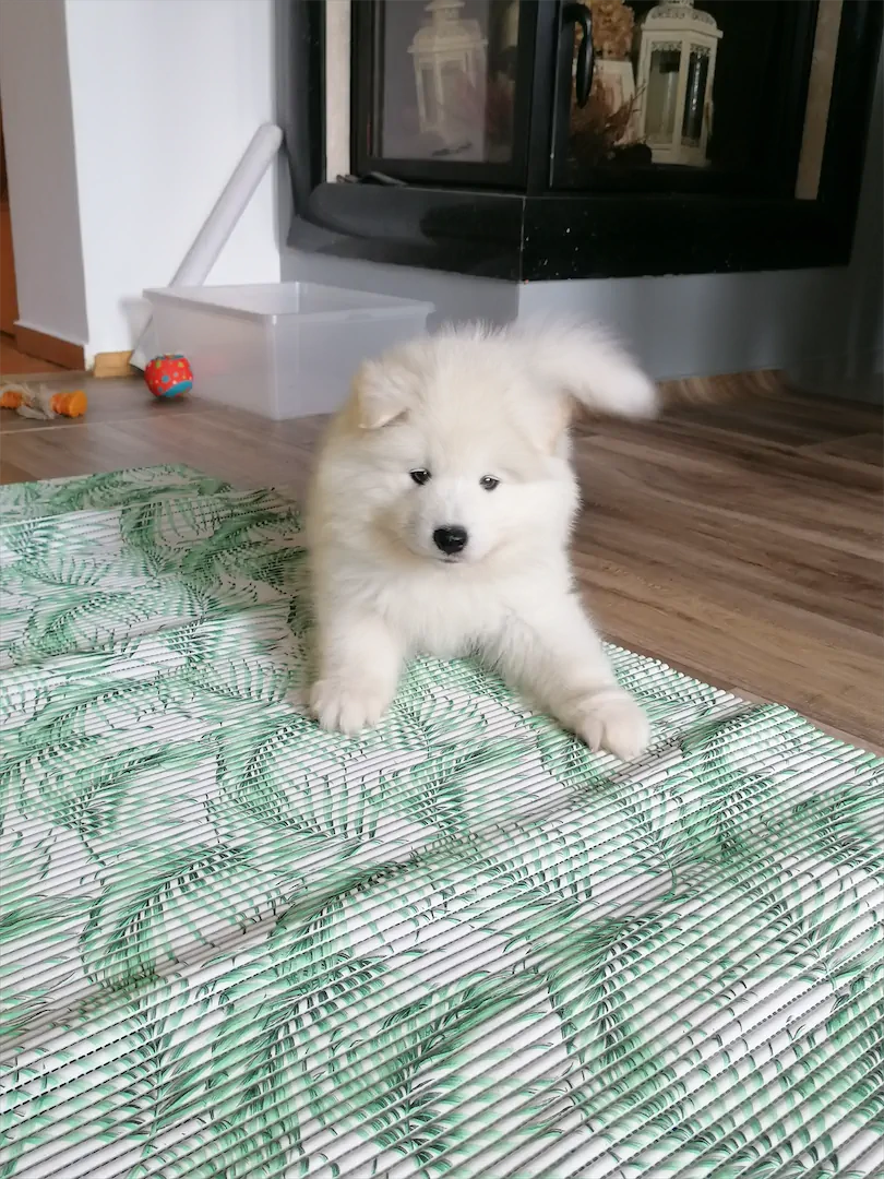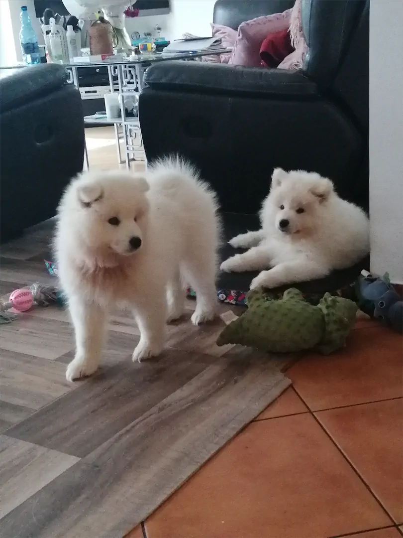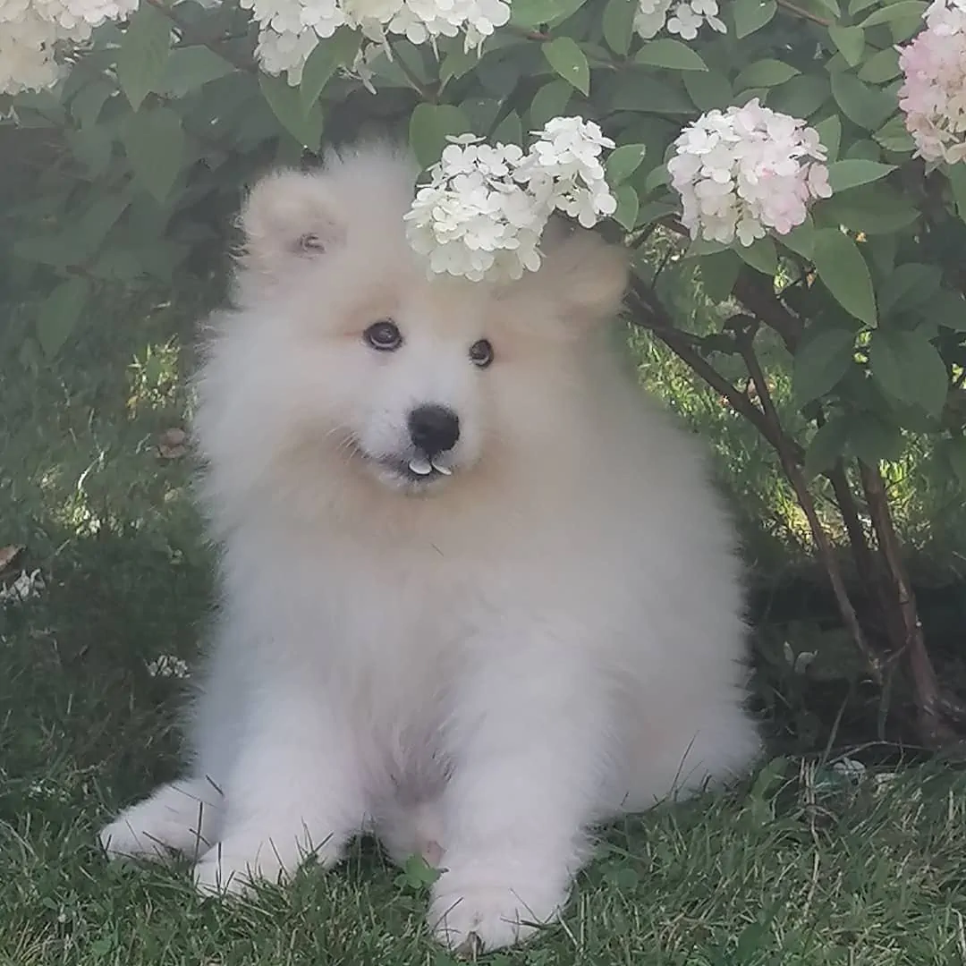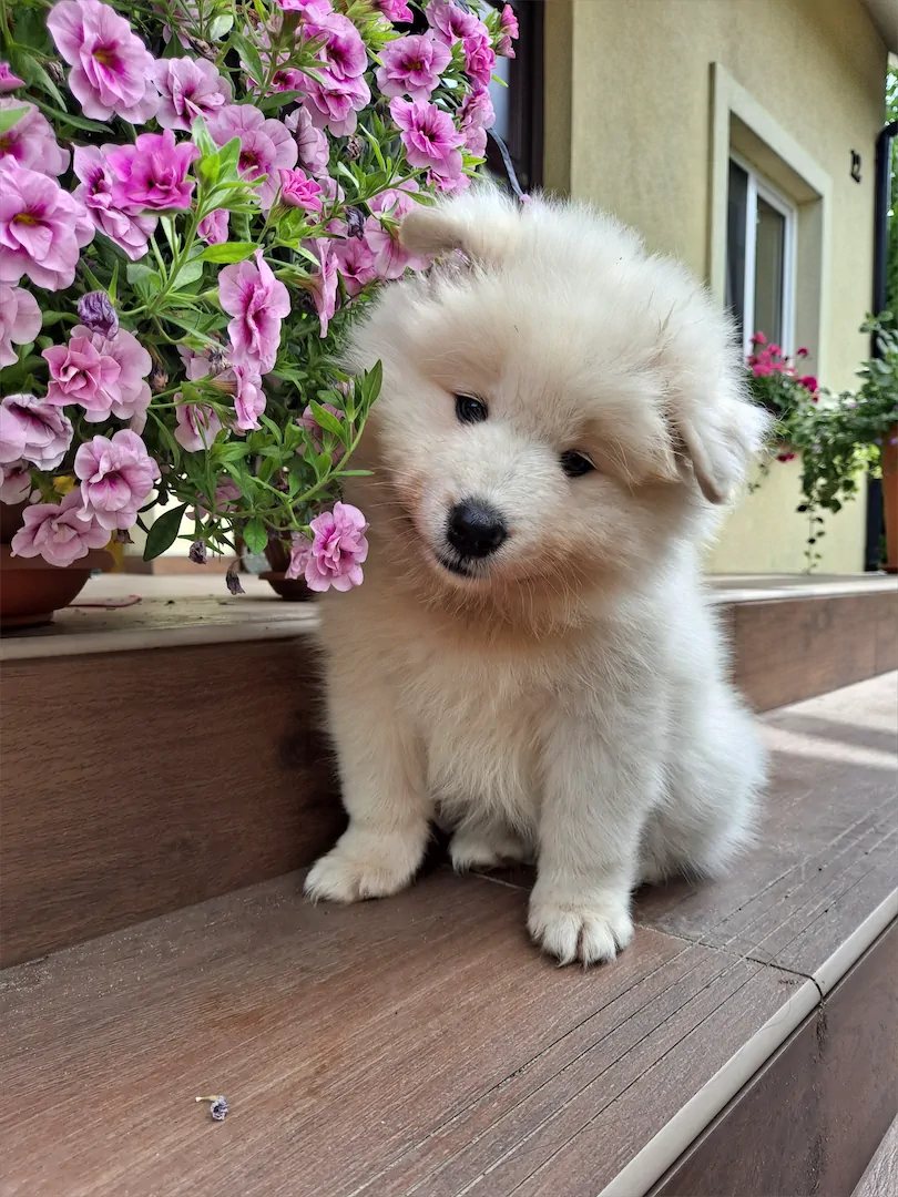 Spełniła nasze oczekiwania w 100%. Jest naszym wymarzonym samoyedkiem z niesamowitymi samoyedźimi cechami. Swoją słodkością roztopi serce każdego. Starsza osoba, moja mama, która boi się wszystkich piesków i nigdy nie dotknęła żadnego psa nawet w rodzinie, dziś głaszcze i pieści Sami. To zasługa wyłącznie Samusi, jej przemiłego charakteru, zaufania, które budzi w każdym, swoim rozbrajającym uśmiechem i osobowością.