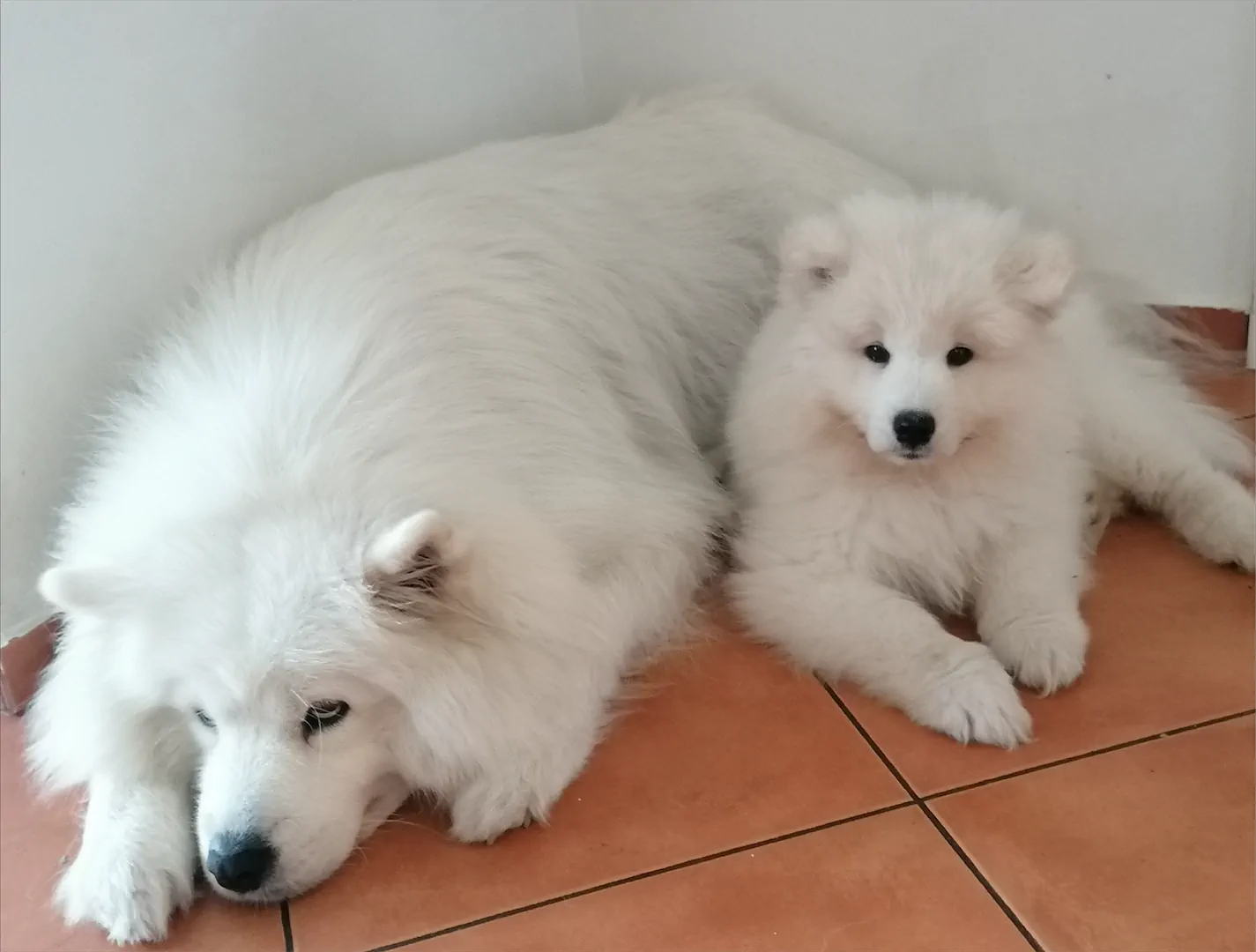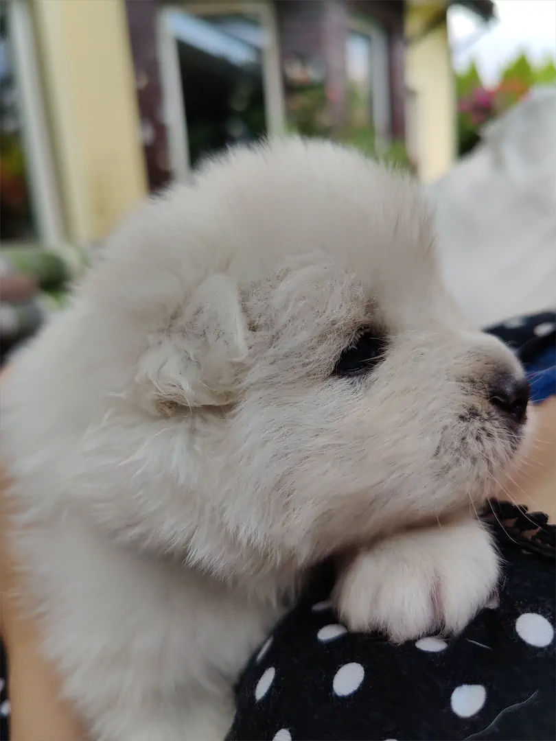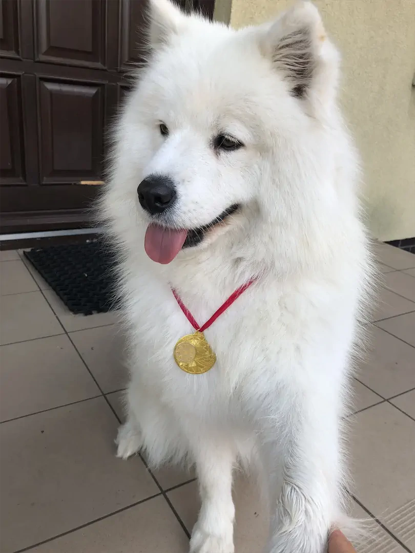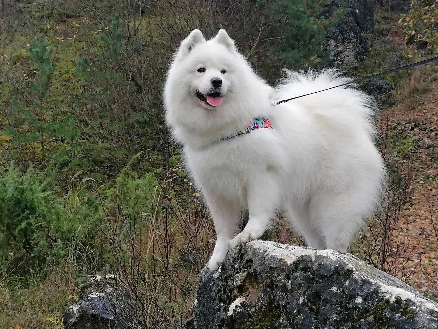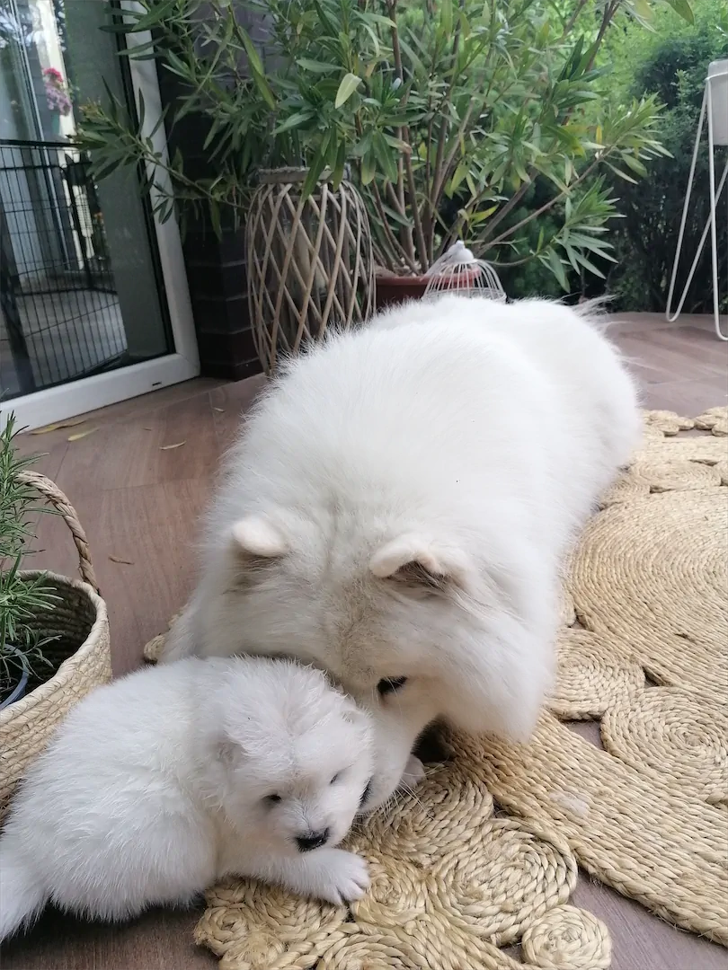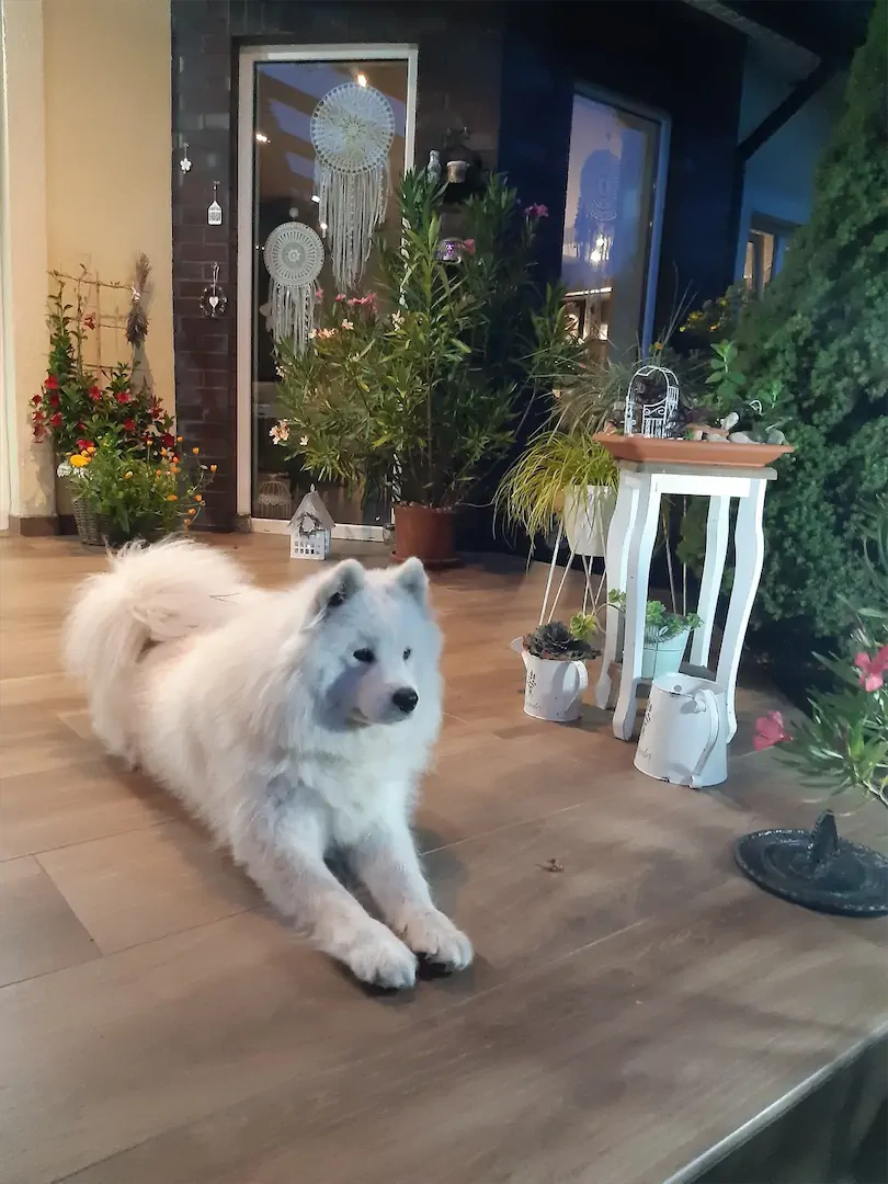 Spełniła nasze oczekiwania w 100%. Jest naszym wymarzonym samoyedkiem z niesamowitymi samoyedźimi cechami. Swoją słodkością roztopi serce każdego. Starsza osoba, moja mama, która boi się wszystkich piesków i nigdy nie dotknęła żadnego psa nawet w rodzinie, dziś głaszcze i pieści Sami. To zasługa wyłącznie Samusi, jej przemiłego charakteru, zaufania, które budzi w każdym, swoim rozbrajającym uśmiechem i osobowością.
