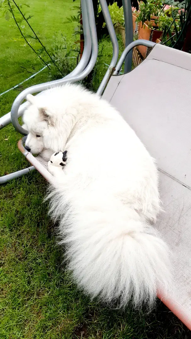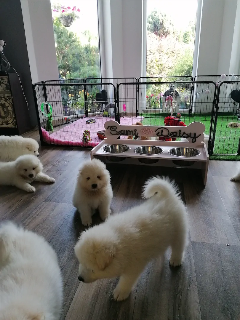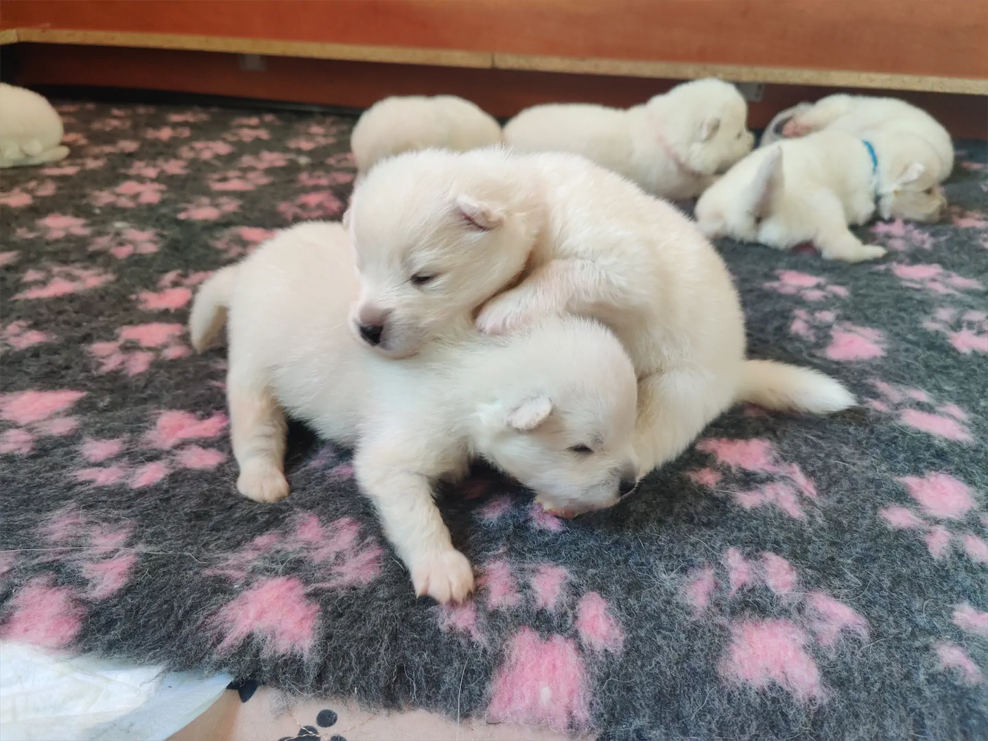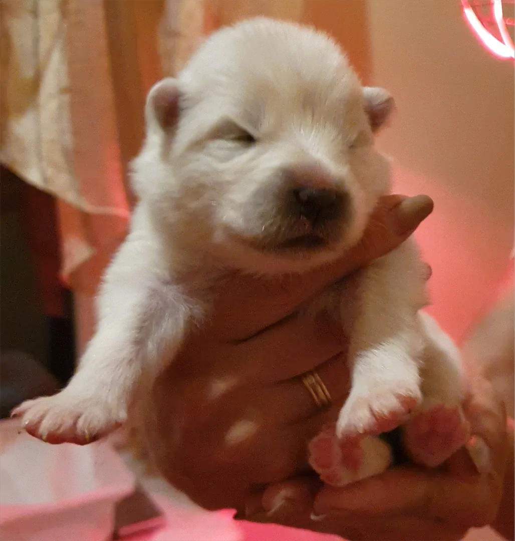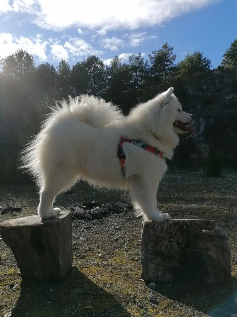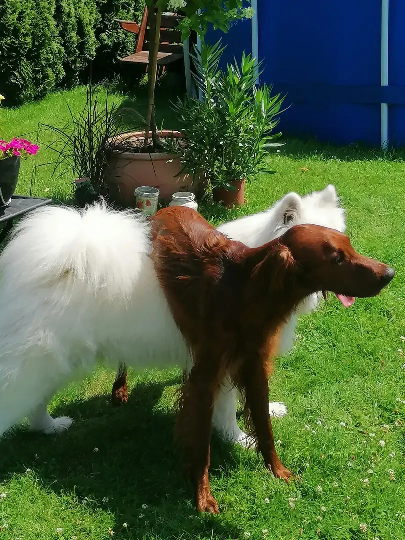 Spełniła nasze oczekiwania w 100%. Jest naszym wymarzonym samoyedkiem z niesamowitymi samoyedźimi cechami. Swoją słodkością roztopi serce każdego. Starsza osoba, moja mama, która boi się wszystkich piesków i nigdy nie dotknęła żadnego psa nawet w rodzinie, dziś głaszcze i pieści Sami. To zasługa wyłącznie Samusi, jej przemiłego charakteru, zaufania, które budzi w każdym, swoim rozbrajającym uśmiechem i osobowością.