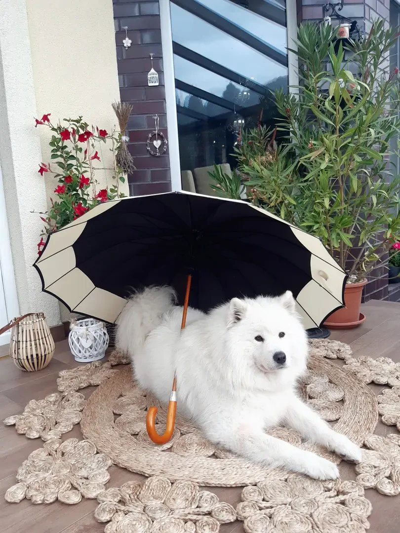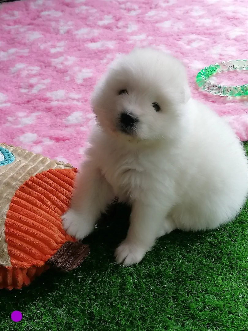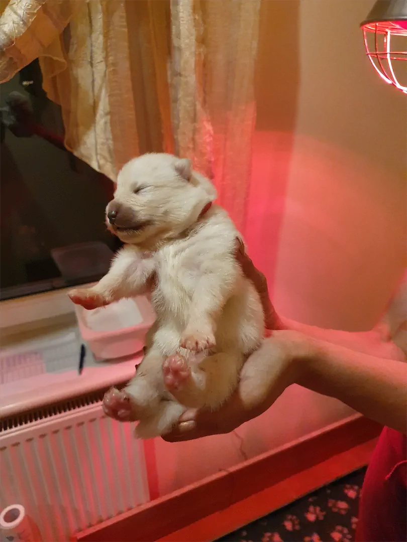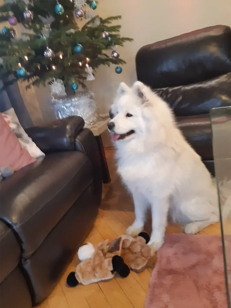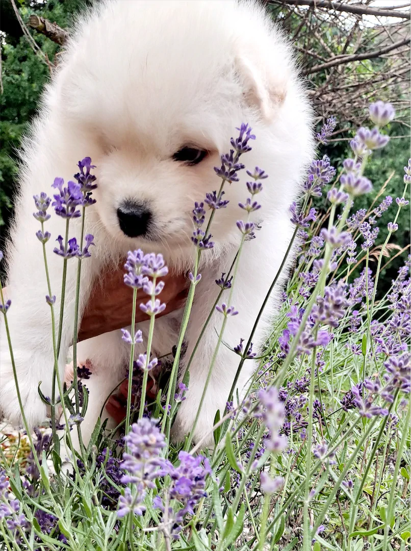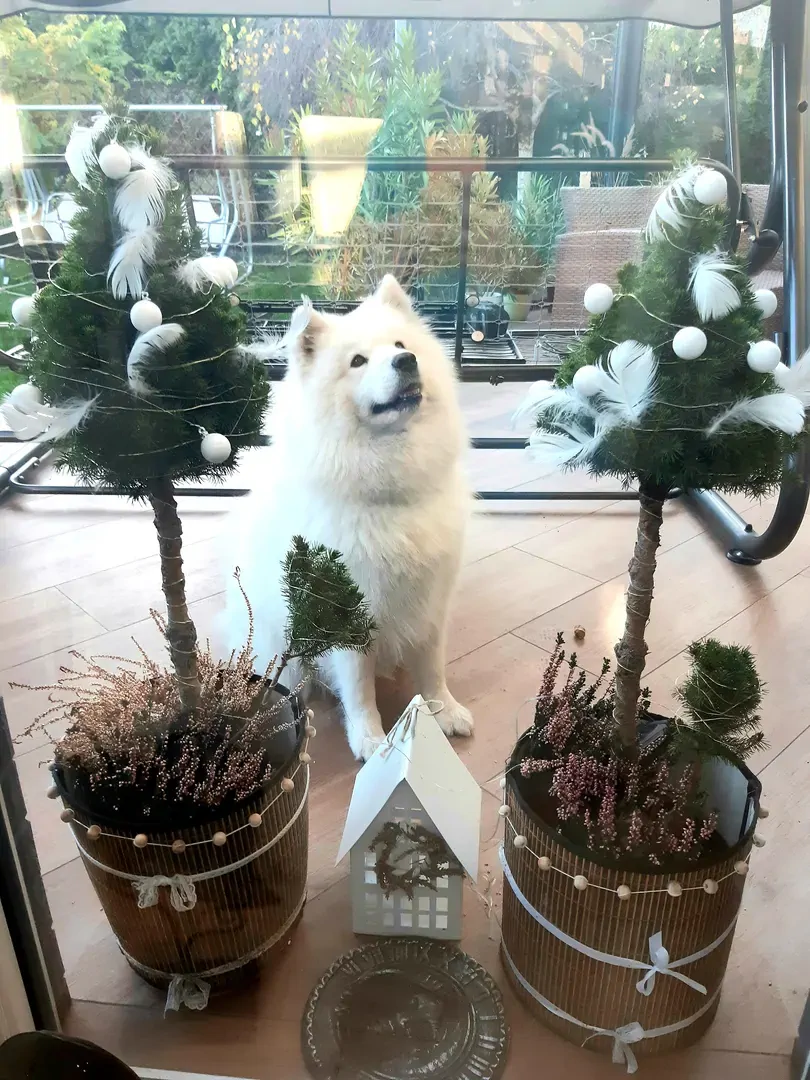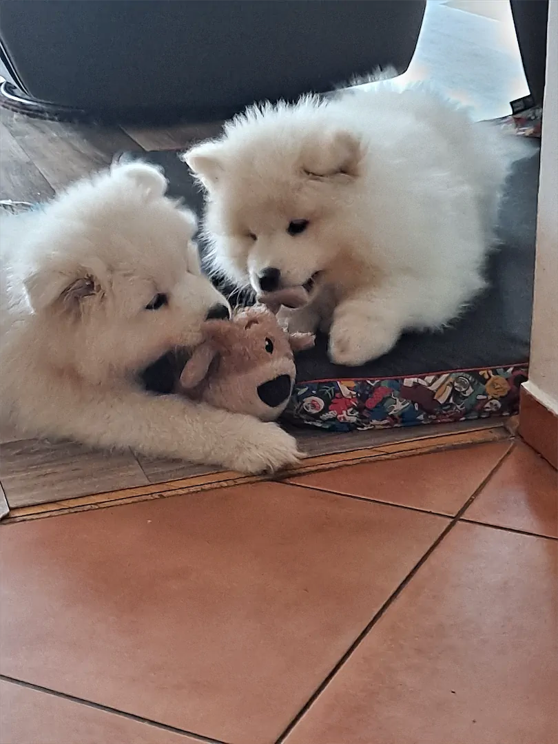 Spełniła nasze oczekiwania w 100%. Jest naszym wymarzonym samoyedkiem z niesamowitymi samoyedźimi cechami. Swoją słodkością roztopi serce każdego. Starsza osoba, moja mama, która boi się wszystkich piesków i nigdy nie dotknęła żadnego psa nawet w rodzinie, dziś głaszcze i pieści Sami. To zasługa wyłącznie Samusi, jej przemiłego charakteru, zaufania, które budzi w każdym, swoim rozbrajającym uśmiechem i osobowością.