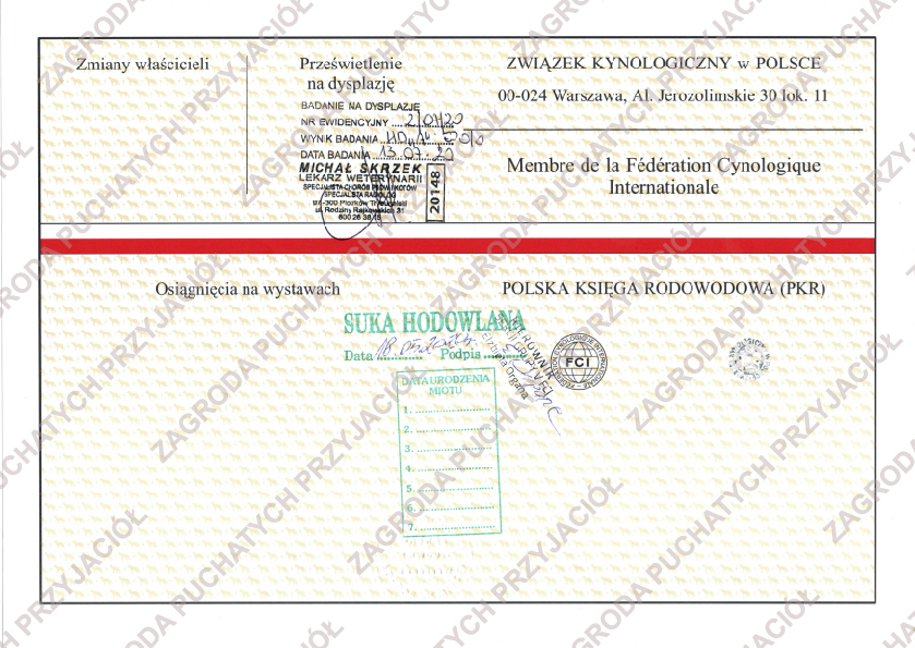 Nasza hodowla jest zarejestrowana w Związku Kynologicznym w Polsce - oddział Częstochowa.