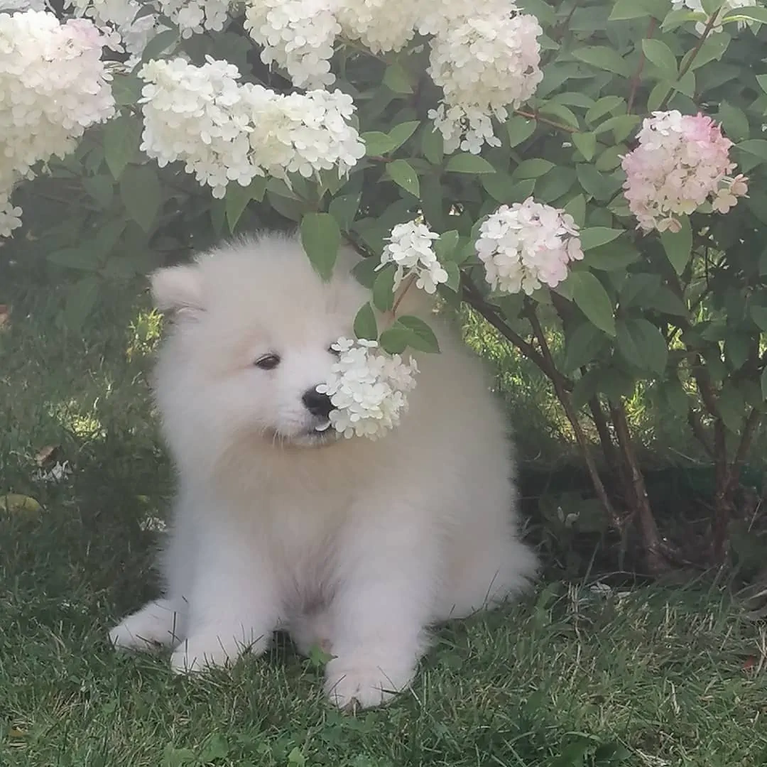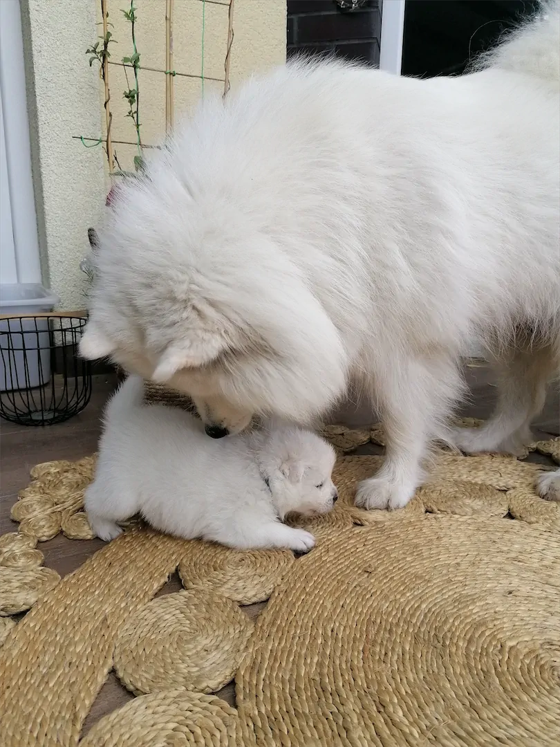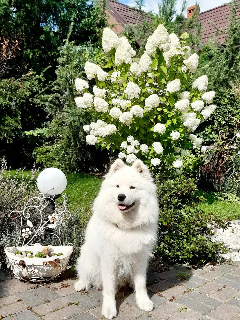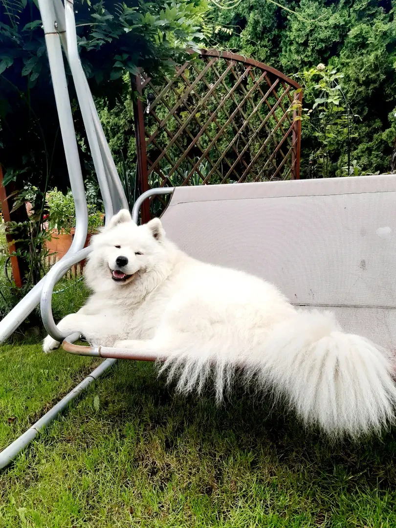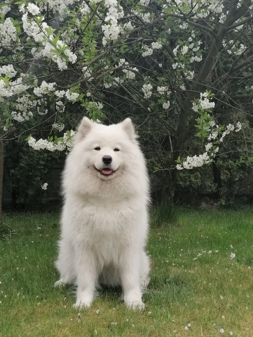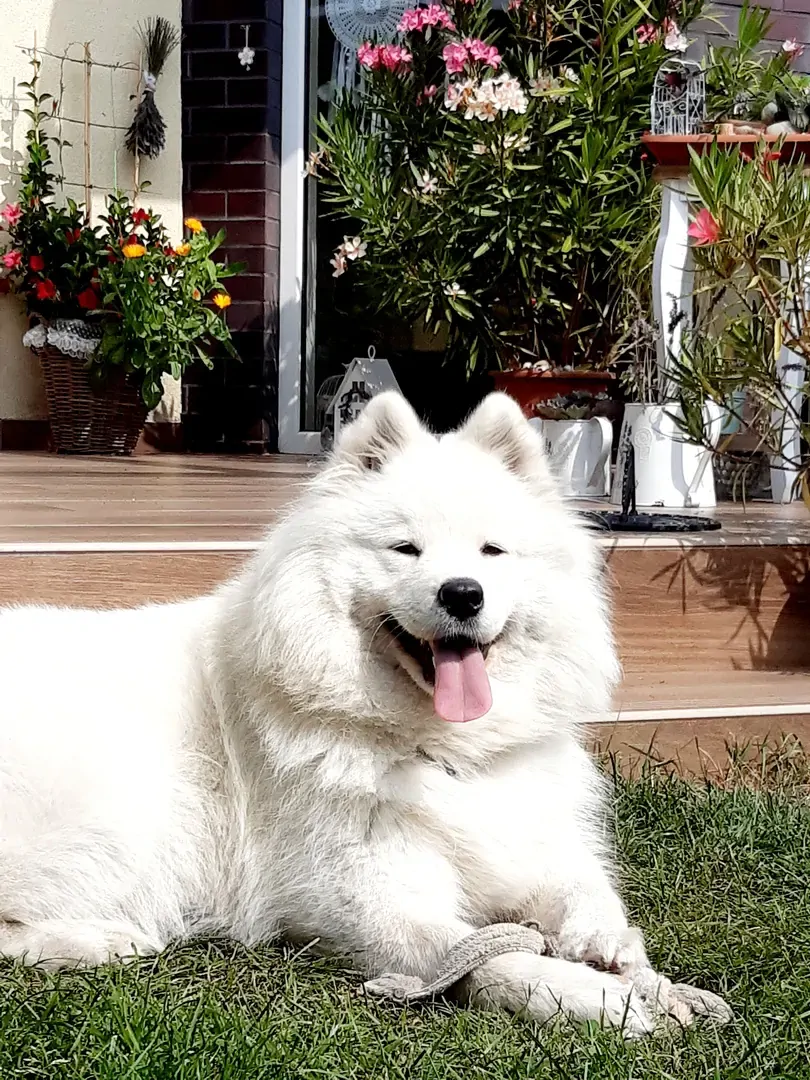 Spełniła nasze oczekiwania w 100%. Jest naszym wymarzonym samoyedkiem z niesamowitymi samoyedźimi cechami. Swoją słodkością roztopi serce każdego. Starsza osoba, moja mama, która boi się wszystkich piesków i nigdy nie dotknęła żadnego psa nawet w rodzinie, dziś głaszcze i pieści Sami. To zasługa wyłącznie Samusi, jej przemiłego charakteru, zaufania, które budzi w każdym, swoim rozbrajającym uśmiechem i osobowością.
