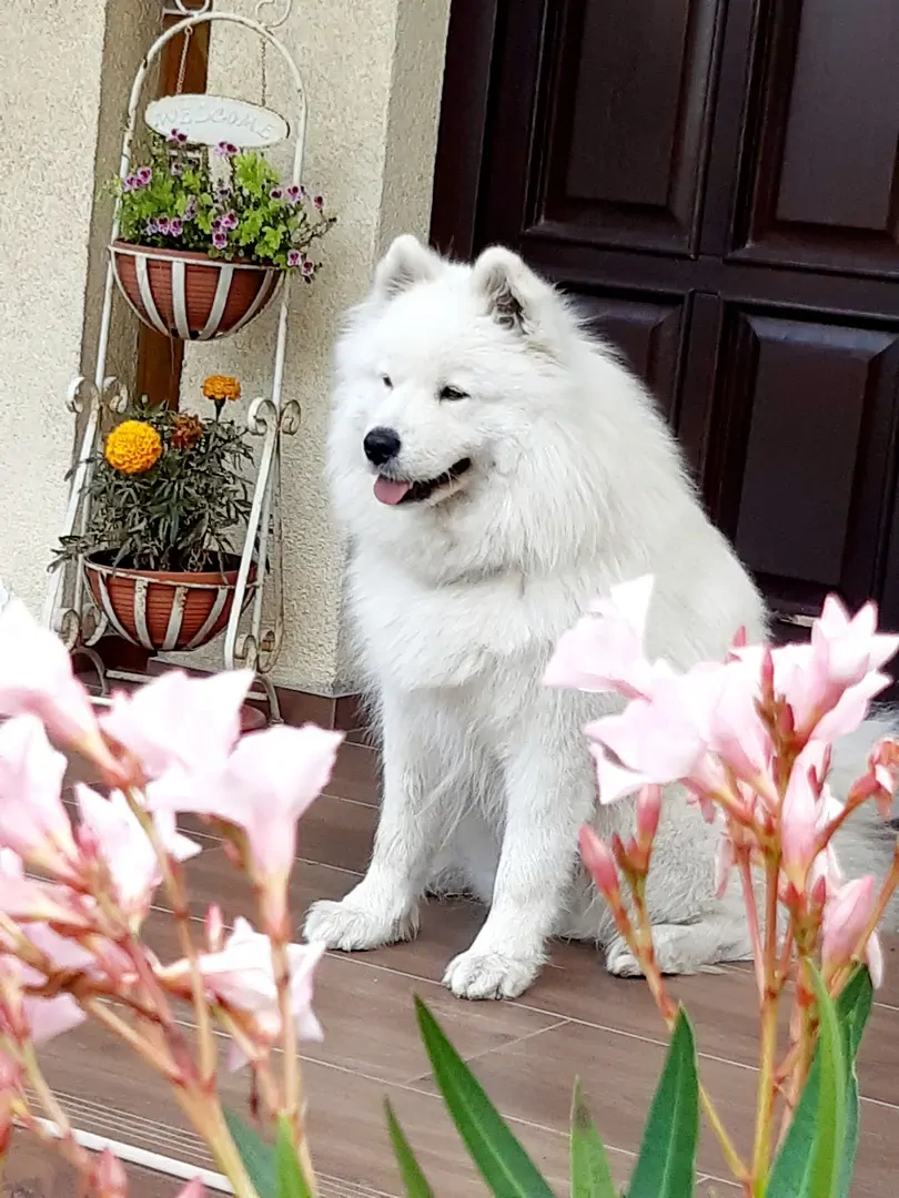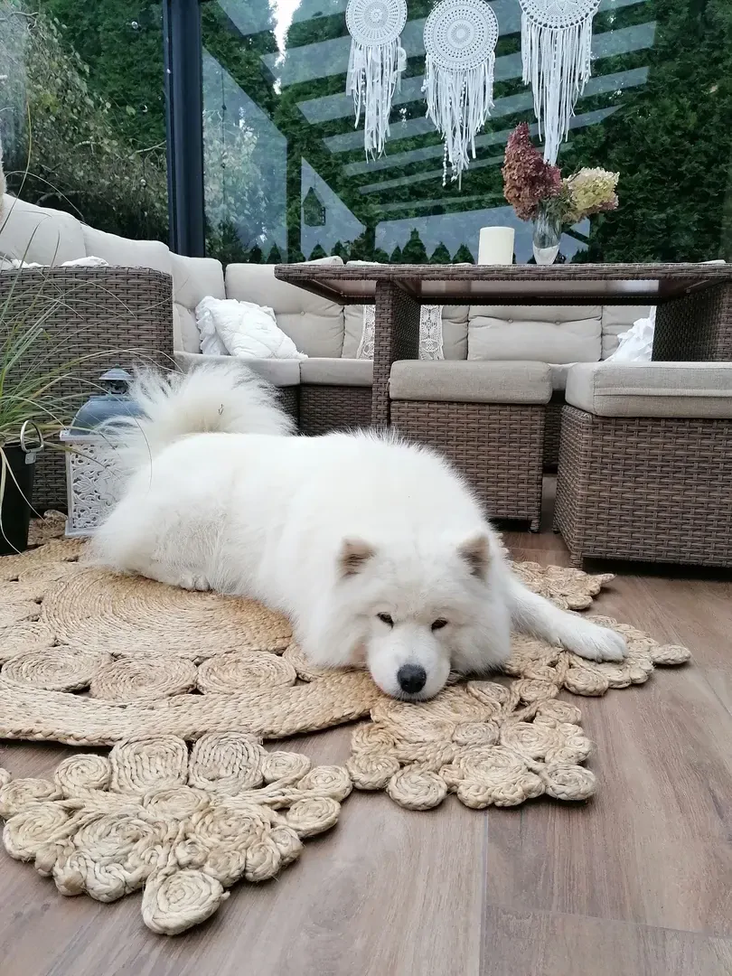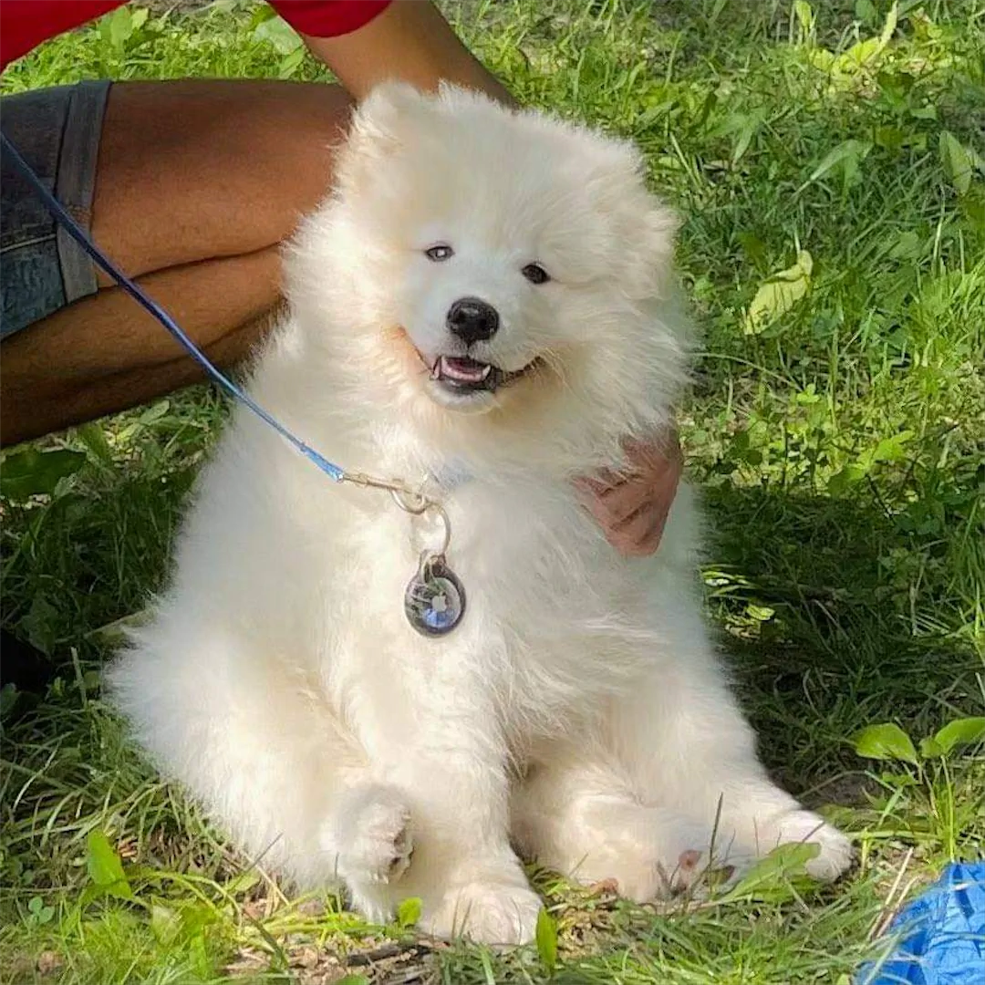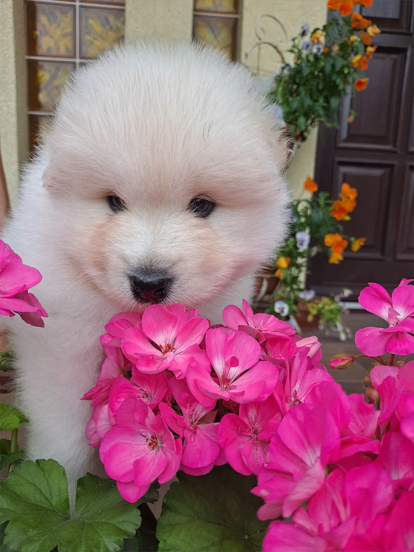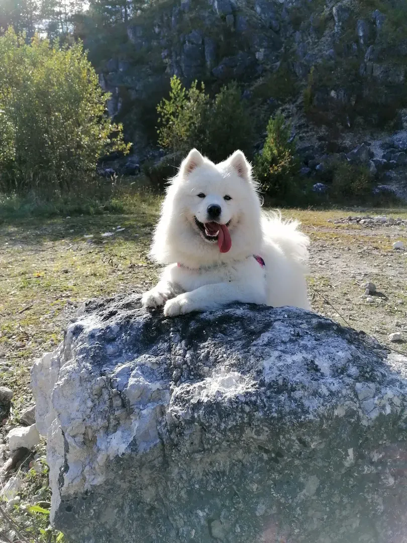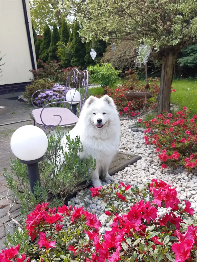 Spełniła nasze oczekiwania w 100%. Jest naszym wymarzonym samoyedkiem z niesamowitymi samoyedźimi cechami. Swoją słodkością roztopi serce każdego. Starsza osoba, moja mama, która boi się wszystkich piesków i nigdy nie dotknęła żadnego psa nawet w rodzinie, dziś głaszcze i pieści Sami. To zasługa wyłącznie Samusi, jej przemiłego charakteru, zaufania, które budzi w każdym, swoim rozbrajającym uśmiechem i osobowością.