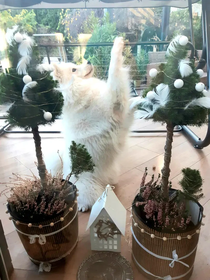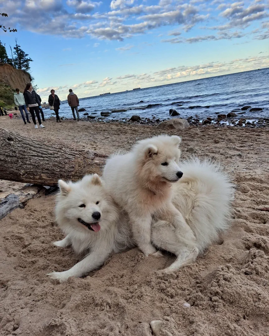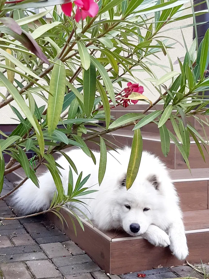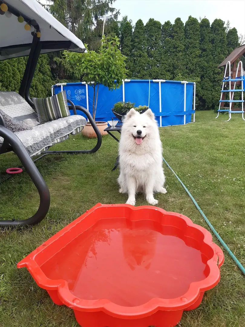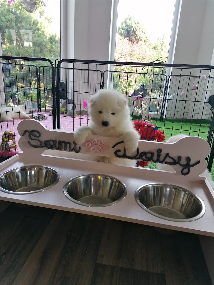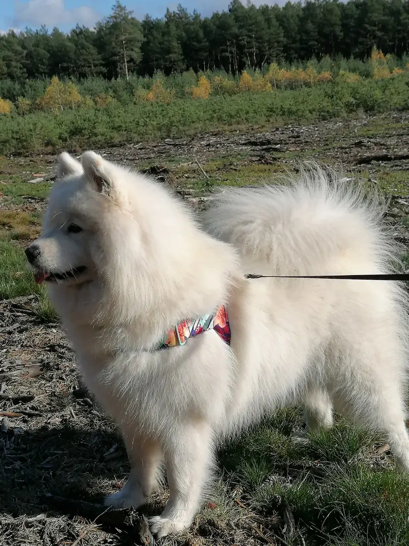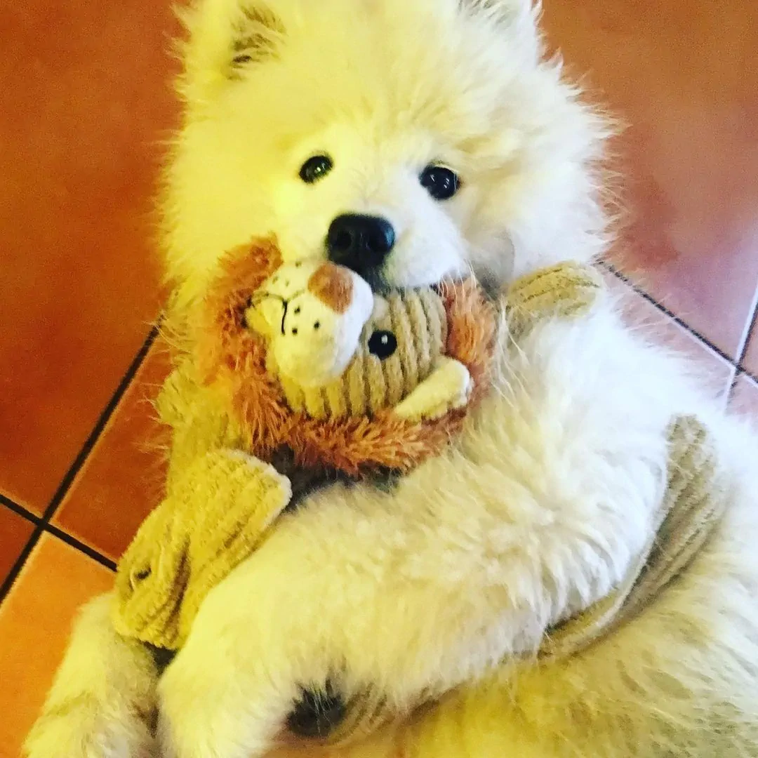 Spełniła nasze oczekiwania w 100%. Jest naszym wymarzonym samoyedkiem z niesamowitymi samoyedźimi cechami. Swoją słodkością roztopi serce każdego. Starsza osoba, moja mama, która boi się wszystkich piesków i nigdy nie dotknęła żadnego psa nawet w rodzinie, dziś głaszcze i pieści Sami. To zasługa wyłącznie Samusi, jej przemiłego charakteru, zaufania, które budzi w każdym, swoim rozbrajającym uśmiechem i osobowością.